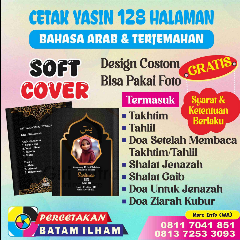 Pilihan Bahan Cover Yassin yang beragam, Gratis Design, dengan minimum order Wujudkan impian Yassin Anda. Dengan hasil memuaskan.