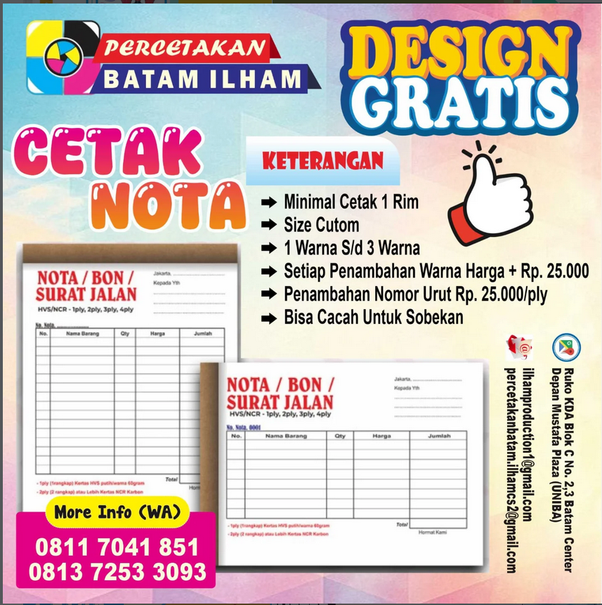Siap membantu dalam mempromosikan bisnis anda dengan layanan cetakm murah dan cepat. Melayani berbagai keperluan promosi Anda.