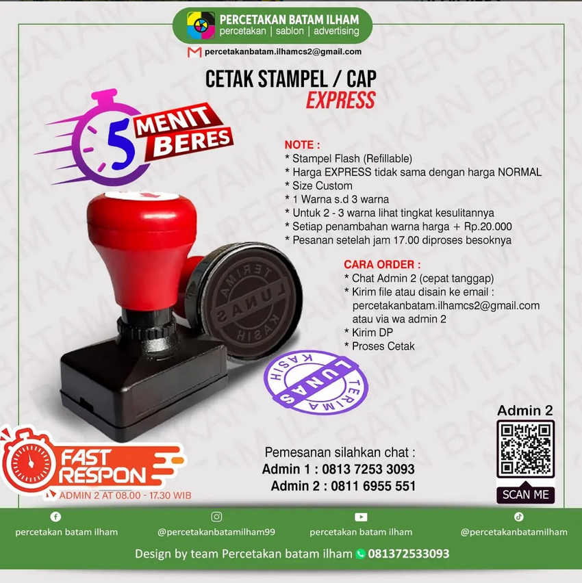 Pilihan Stempel yang bisa di custome sesuai dengan permintaan Anda, Ada Manual/ Kayu dan Otomatik yang bisa ditunggu hasilnya dan dengan kualitas tinta premium.