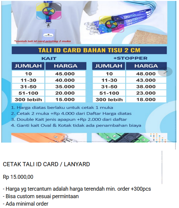 Dengan Pilihan yang beragam jenis bahan untuk ID Card Kantor, Free Design, bisa ditunggu, Garansi hasil dan kualitas bahan yang tidak mengecewakan Anda.